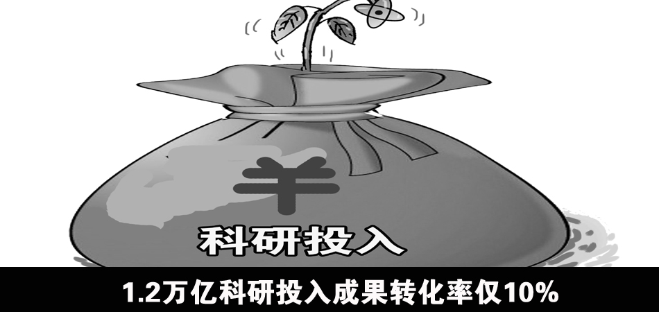 數(shù)據(jù)顯示,2013年我國全社會研發(fā)投入已達1.2萬億元左右,其中財政科技支出5000億元,居世界前列,但原發(fā)改委副主任張曉強表示,我國科技成果轉(zhuǎn)化率僅為10%,遠低于發(fā)達國家40%的水平。