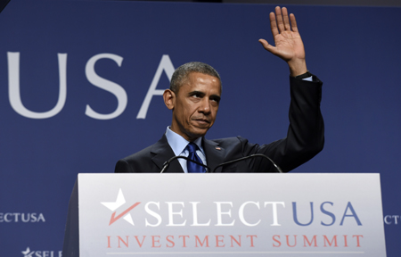 美國總統(tǒng)奧巴馬23日宣布一系列新的行政舉措,吸引外國企業(yè)擴(kuò)大對(duì)美直接投資。他表示,美國聯(lián)邦政府將與各州政府加強(qiáng)招商引資合作,為投資者提供在美投資基本知識(shí)培訓(xùn)服務(wù)、有關(guān)各州投資激勵(lì)政策的在線數(shù)據(jù)庫和其他投資工具,以幫助投資者確定具體投資對(duì)象以及尋找當(dāng)?shù)貪撛诤献骰锇。圖為3月23日奧巴馬在馬里蘭州出席第二屆“選擇美國投資峰會(huì)”。
