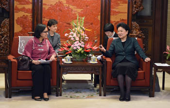 3月23日,國務(wù)院副總理劉延?xùn)|(右)在北京中南海紫光閣會(huì)見世界銀行常務(wù)副行長兼首席運(yùn)營官英卓華。記者 張鐸
