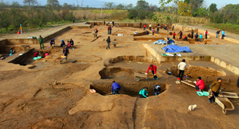 西坡遺址挖掘現(xiàn)場(chǎng) |