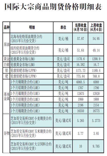 國際大宗商品期貨價(jià)格明細(xì)表[2015-4-13]