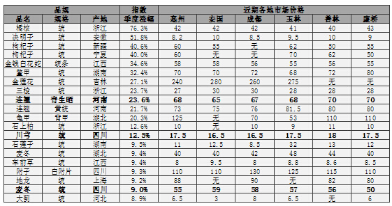 3. 中藥材品種指數(shù)、價(jià)格漲跌分析