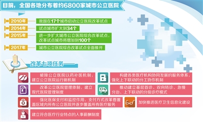 根據(jù)《意見》要求,改革試點(diǎn)城市由2014年的34個(gè)增加到今年的100個(gè),2017年所有地級(jí)以上城市都將全面推進(jìn)公立醫(yī)院改革。