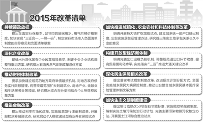 國務(wù)院18日批轉(zhuǎn)了國家發(fā)改委《2015年深化經(jīng)濟體制改革重點工作意見》(簡稱《意見》)。在共計萬余字、涉及39項具體改革內(nèi)容的《意見》全文中,提及改革的有170余處,提及“加快”的有32處。據(jù)《經(jīng)濟參考報》記者統(tǒng)計,包括出租車行業(yè)改革、注冊制、巨災(zāi)險在內(nèi)的大量在議改革措施已確定年內(nèi)落地。