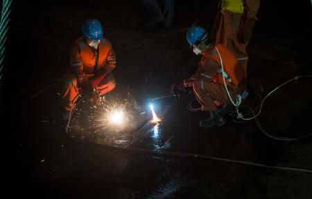 6月3日21時許,救援人員對客船“東方之星”輪的底部進(jìn)行切割作業(yè)以便救援。截至3日19時,救援人員已發(fā)現(xiàn)26具遺體和14名幸存者。3日的救援工作集中在地毯式搜救中,接下來,將在翻出水面的船底切割一個長方形窗口,以便讓潛水員進(jìn)入船內(nèi)繼續(xù)搜尋救人。截至記者發(fā)稿時,救援工作仍在黑夜中緊張進(jìn)行。