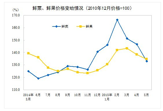 ????國(guó)家統(tǒng)計(jì)局城市司高級(jí)統(tǒng)計(jì)師余秋梅解讀指出,從環(huán)比看,5月份CPI變動(dòng)有四個(gè)特點(diǎn)。一是季節(jié)因素影響部分鮮活食品價(jià)格下降。鮮菜、鮮果和蛋價(jià)格分別下降9.2%、2.7%和1.2%,合計(jì)影響CPI下降0.39個(gè)百分點(diǎn),超過(guò)當(dāng)月CPI總降幅。二是豬肉價(jià)格恢復(fù)性上漲。前期豬肉價(jià)格低迷,飼料價(jià)格和人工成本上漲,部分養(yǎng)殖戶減少生豬存欄,導(dǎo)致豬肉供應(yīng)偏緊,價(jià)格上漲2.7%,影響CPI上漲0.08個(gè)百分點(diǎn)。三是政策因素影響煙草價(jià)格上漲。從5月10日起,國(guó)家提高了卷煙批發(fā)環(huán)節(jié)價(jià)格稅率,并加征從量稅,各地?zé)煵輧r(jià)格有不同程度的上漲,全國(guó)煙草價(jià)格上漲3.6%,影響CPI上漲0.06個(gè)百分點(diǎn)。四是國(guó)際因素導(dǎo)致汽柴油價(jià)格略有反彈。受國(guó)際原油(58.45, 0.31, 0.53%)價(jià)格回升影響,汽油和柴油價(jià)格分別上漲5.7%和6.5%,影響CPI上漲0.05個(gè)百分點(diǎn)。