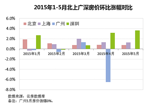 統(tǒng)計(jì)顯示,自2015年1月起,截至目前,一線城市中,深圳房?jī)r(jià)漲幅最大,為7.6%,上海5.7%、北京3.5%,廣州-5.8%。