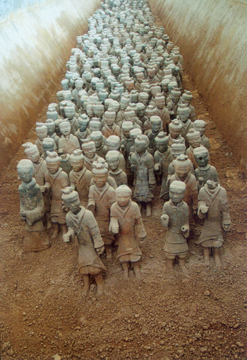 “漢代三絕”之二的漢兵馬俑,出土自徐州漢墓。最早是1984年12月被發(fā)現(xiàn)于徐州市東郊獅子山西麓,為漢第三代楚王劉戊的陪葬品。獅子山漢兵馬俑分布于六條俑坑,總數(shù)4000多件,種類繁多,有官員俑、衛(wèi)士俑、發(fā)辮俑、甲士俑等十余種,是西漢早期楚國實戰(zhàn)軍隊的地下縮影。