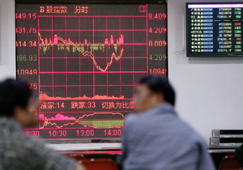 29日,股民在上海一家證券營業(yè)部內(nèi)關(guān)注股市行情。 新華社記者