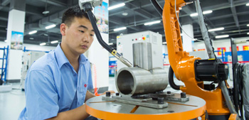 近日,重慶永川區(qū)某智能裝備生產(chǎn)企業(yè)一名技術(shù)人員在對剛剛生產(chǎn)的焊接工業(yè)機(jī)器人進(jìn)行精細(xì)調(diào)試。記者 劉潺/攝