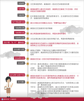 經(jīng)歷了持續(xù)半個世紀的敵對狀態(tài),從去年年底開始,古美兩國關系開始松動。2014年12月,美國總統(tǒng)奧巴馬與古巴領導人勞爾·卡斯特羅共同宣布,將就恢復兩國外交關系展開磋商,同時達成換囚協(xié)議。今年1月,美國放松對美國公民前往古巴旅游和從事商貿、金融活動的限制,但依然對古巴實施禁運。4月,奧巴馬和勞爾·卡斯特羅在巴拿馬城出席第七屆美洲國家首腦會議期間舉行會晤。這是近半個世紀以來,美古兩國領導人首次正式會晤。本月初,美國與古巴就恢復正常外交關系達成協(xié)議。