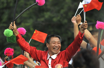7月31日,在北京市延慶縣望京廣場,當(dāng)?shù)鼐用駪c祝北京攜手張家口獲得2022年冬奧會(huì)舉辦權(quán)?!⌒氯A社記者 高健鈞/攝 |