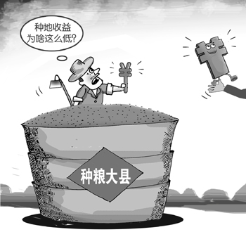 “糧食主銷(xiāo)區(qū)大量發(fā)展工業(yè),而主產(chǎn)縣則因?yàn)樽ゼZ食失去了太多發(fā)展機(jī)會(huì)。用一句話(huà)概括就是‘別人吃飯,我們貼錢(qián)。’”一位受訪副縣長(zhǎng)這樣感慨。為了穩(wěn)住糧食面積和產(chǎn)量,這些產(chǎn)糧大縣每年一到春耕、“雙搶”時(shí)節(jié),就會(huì)出現(xiàn)田里的干部比農(nóng)民還多的景象。政府不僅要多次發(fā)文敦促各鄉(xiāng)鎮(zhèn)落實(shí)任務(wù),甚至一些干部還要把農(nóng)民拋荒不愿種的地流轉(zhuǎn)過(guò)來(lái)自己種?!叭绻淹度爰Z食生產(chǎn)的錢(qián)集中起來(lái)搞一兩個(gè)工業(yè)企業(yè),最多三年時(shí)間就賺回來(lái)了。”