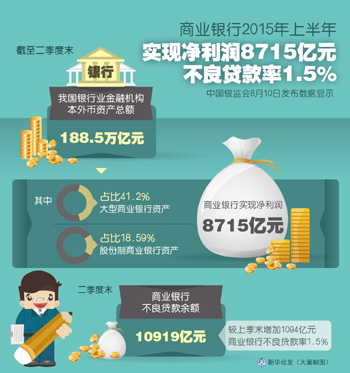 從銀監(jiān)會公布的數(shù)據(jù)顯示,截至今年二季度末,商業(yè)銀行的不良貸款余額達10919億元,較上年末增加了2493億元,逼近2014年全年不良貸款的增量,其中16家上市銀行不良貸款增量接近2000億元;商業(yè)銀行平均不良貸款率升至1.5%,其中上市銀行平均不良貸款率亦超過了1%。