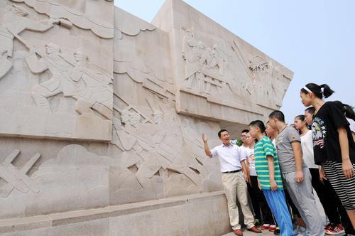 8月31日,河北邢臺第七中學(xué)的老師帶領(lǐng)入學(xué)新生瞻仰邢臺抗戰(zhàn)紀(jì)念碑。