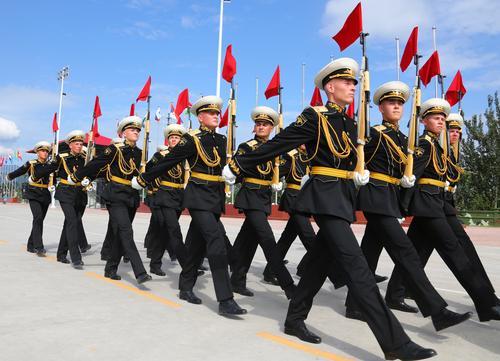 8月26日,俄羅斯參閱方隊在進行受閱前的基礎(chǔ)訓練。
