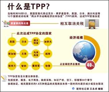 當?shù)貢r間10月5日,美國等12國經(jīng)貿(mào)部長發(fā)表聯(lián)合聲明,宣布歷時5年多的“跨太平洋戰(zhàn)略經(jīng)濟伙伴協(xié)定”(TPP,簡稱《協(xié)定》)談判結束。中國商務部新聞發(fā)言人6日表示,中方對符合世界貿(mào)易組織規(guī)則、有助于促進亞太區(qū)域經(jīng)濟一體化的制度建設均持開放態(tài)度。