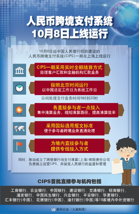 人民幣國(guó)際化進(jìn)程再次迎來(lái)里程碑式事件。10月8日,人民幣跨境支付系統(tǒng)(一期)成功上線運(yùn)行。人民幣跨境支付系統(tǒng)英文簡(jiǎn)稱為CIPS,為境內(nèi)外金融機(jī)構(gòu)人民幣跨境和離岸業(yè)務(wù)提供資金清算、結(jié)算服務(wù),是重要的金融基礎(chǔ)設(shè)施,也是人民幣國(guó)際化的有力支撐點(diǎn)。