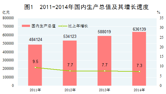 經(jīng)濟(jì)增長(zhǎng)保持中高速。2011-2014年,國(guó)內(nèi)生產(chǎn)總值年均增長(zhǎng)8.0%,由高速增長(zhǎng)轉(zhuǎn)為中高速增長(zhǎng)。分年度看,2011年比上年增長(zhǎng)9.5%,2012、2013年均增長(zhǎng)7.7%,2014年增長(zhǎng)7.3%,2015年上半年增長(zhǎng)7.0%?!笆濉逼陂g,預(yù)計(jì)我國(guó)經(jīng)濟(jì)年均增長(zhǎng)近8%,不僅高于同期世界2.5%左右的年均增速,在世界主要經(jīng)濟(jì)體中也名列前茅。