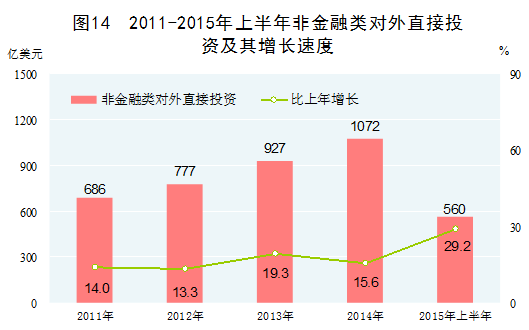“走出去”戰(zhàn)略加快實(shí)施。對(duì)外投資進(jìn)入加速發(fā)展階段,沿海開(kāi)放、沿邊開(kāi)放展現(xiàn)新格局。2014年,非金融類對(duì)外直接投資1072億美元,比2010年增長(zhǎng)78.1%,年均增長(zhǎng)15.5%,2015年上半年非金融類對(duì)外直接投資同比增長(zhǎng)29.2%。2014年,對(duì)外承包工程業(yè)務(wù)完成營(yíng)業(yè)額1424億美元,比2010年增長(zhǎng)54.5%,年均增長(zhǎng)11.5%。自貿(mào)區(qū)建設(shè)取得重要突破,2013年我國(guó)在上海設(shè)立了首個(gè)自由貿(mào)易園區(qū),此后又新設(shè)廣東、天津、福建自由貿(mào)易園區(qū);與冰島、瑞士自貿(mào)區(qū)啟動(dòng)實(shí)施,中韓、中澳自貿(mào)區(qū)完成實(shí)質(zhì)性談判。積極推進(jìn)絲綢之路經(jīng)濟(jì)帶和21世紀(jì)海上絲綢之路合作建設(shè),參與境外基礎(chǔ)設(shè)施建設(shè)和產(chǎn)能合作,在鐵路、電力、通信、油氣等領(lǐng)域?qū)ν夂献魅〉弥匾晒?/span>
