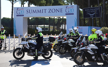 11月11日,在土耳其安塔利亞,警察在二十國集團領(lǐng)導(dǎo)人第十次會議主會場區(qū)域內(nèi)執(zhí)勤?!∮浾?鄒樂/攝 |