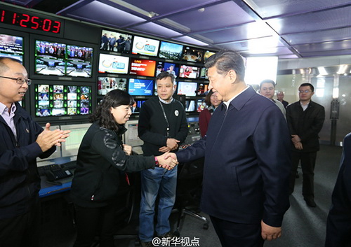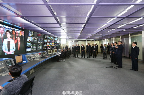 【總書(shū)記連線央視北美分臺(tái)】19日上午,習(xí)近平在中央電視臺(tái)調(diào)研,來(lái)到總控中心同位于華盛頓市中心的北美分臺(tái)視頻連線,了解分臺(tái)建設(shè)運(yùn)行情況。當(dāng)?shù)弥峙_(tái)成立4年,每天提供5小時(shí)、全自制的節(jié)目,90%的工作人員來(lái)自當(dāng)?shù)?,?xí)近平對(duì)此表示肯定,向分臺(tái)全體人員致以親切問(wèn)候和良好祝愿。