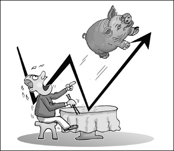繼2004年、2008年、2011年三輪大幅波動(dòng)后,豬肉價(jià)格的“寒熱病”近期可能會(huì)再度發(fā)作。有數(shù)據(jù)顯示,24日全國(guó)生豬均價(jià)已漲破2011年6月的歷史高點(diǎn)。國(guó)家發(fā)改委近日發(fā)出黃色預(yù)警,截至3月9日,豬糧比價(jià)為9.13﹕1,處于較高水平,可能會(huì)引起養(yǎng)殖戶過(guò)度補(bǔ)欄,導(dǎo)致生豬產(chǎn)能過(guò)度擴(kuò)張,使生豬價(jià)格很快進(jìn)入下跌通道。業(yè)內(nèi)擔(dān)憂,生豬行業(yè)恐怕又將重回“母豬補(bǔ)欄補(bǔ)到過(guò)剩,豬價(jià)下跌跌至虧損”的老路。