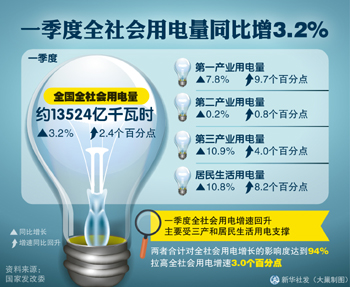 用電數(shù)量、增速、結(jié)構(gòu)和價(jià)格等數(shù)據(jù)被認(rèn)為是觀察經(jīng)濟(jì)形勢(shì)的有效指標(biāo)?!督?jīng)濟(jì)參考報(bào)》記者在多地調(diào)研了解到,今年4月用電延續(xù)了溫和復(fù)蘇的態(tài)勢(shì),其中,第三產(chǎn)業(yè)發(fā)展迅猛,第二產(chǎn)業(yè)卻仍處于較低水平。此外,各地用電和經(jīng)濟(jì)增長(zhǎng)區(qū)域分化嚴(yán)重,企業(yè)苦樂(lè)不均,中部崛起至領(lǐng)先地位。