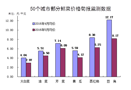 從環(huán)比看,CPI環(huán)比下降0.5%,主要是受鮮菜價(jià)格下降較多的影響。年初寒潮天氣襲擊我國(guó)大部分地區(qū),影響了鮮菜的生產(chǎn)和運(yùn)輸,鮮菜價(jià)格高位運(yùn)行,較往年同期上漲較多。隨著應(yīng)季鮮菜上市,市場(chǎng)供應(yīng)逐步增加,鮮菜價(jià)格趨于正常。5月份鮮菜價(jià)格環(huán)比下降21.5%,影響CPI環(huán)比下降約0.64個(gè)百分點(diǎn),超過CPI環(huán)比總降幅。從50個(gè)城市主要食品價(jià)格旬報(bào)監(jiān)測(cè)看,蔬菜價(jià)格回落幅度較大,部分鮮菜價(jià)格下降幅度甚至超過三成。5月份豬肉價(jià)格環(huán)比繼續(xù)上漲,漲幅為2.3%,影響CPI環(huán)比上漲約0.07個(gè)百分點(diǎn)。國(guó)內(nèi)成品油價(jià)格兩次提價(jià),汽油、柴油價(jià)格環(huán)比分別上漲3.7%和3.8%,合計(jì)影響CPI環(huán)比上漲約0.06個(gè)百分點(diǎn)。