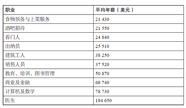 總的來看,你應當選擇一位能夠保證你的家庭收入超越貧苦線且享有一些余裕的伴侶。這個標準并不高,因為在可選的伴侶中,有80% 的人都處于貧困線之上。以家庭收入為單位,也就是說,如果你有工作的話,那么你與伴侶兩人的工資總和才能說明問題。從下圖的職業(yè)收入對照表中我們可以看出,如果你是商業(yè)及金融行業(yè)的從業(yè)者,那么無論你對象的職業(yè)屬于下列哪個行業(yè),你們的家庭收入都能超過75 000 美元。