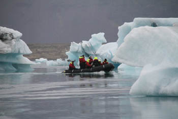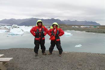 靠近冰湖時(shí),會(huì)有明顯的降溫,風(fēng)也變得更刺骨。好在游船公司都會(huì)給每位游客套上一身超級(jí)防風(fēng)保暖的連體衣。由于沒有提前預(yù)訂,幸運(yùn)的我們居然趕上了最后一班游船。選擇游船也有講究,一般來(lái)說大船穩(wěn),小船也就是沖鋒艇快,而且靈活,可以更加深入地穿行在狹窄的大塊浮冰中間,這點(diǎn)經(jīng)驗(yàn)日后在觀鯨時(shí)也能用上。