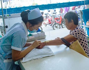 ?作為國家首批綜合醫(yī)改試點(diǎn)省份,目前江蘇基層診療人次已占診療總數(shù)的60%,86%的新農(nóng)合住院病人在縣域內(nèi)治療。圖為8月8日,江蘇淮安淮陰區(qū)王營(yíng)社區(qū)衛(wèi)生服務(wù)中心的護(hù)士為患者進(jìn)行輸液穿刺。新華社記者 劉金海/攝 |