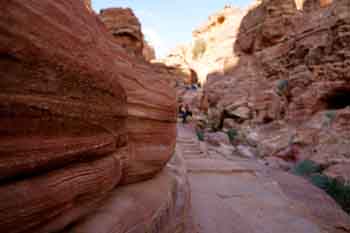 要走過3公里的峽谷才能進(jìn)入真正的佩特拉古城,沿著山體往里走,沿途巖石色彩漸漸變化,粉紅色慢慢加重,接近玫瑰紅。而道路上一群群畫著煙熏裝扮,像酷似杰克船長的當(dāng)?shù)啬腥蓑T著駱駝從你身邊穿行而過,散發(fā)著典型的阿拉伯風(fēng)情。