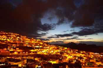 我就站在那山坡上,看太陽慢慢,慢慢落下;看月亮漸漸,漸漸升起。滿山的房屋點(diǎn)起了燈光,沿途路上的燈也全部打開,一層一層圍繞著整個山頭,照亮著整個城鎮(zhèn)。這一片燈火,談不上輝煌,但定是夢幻。我有些無法相信這是我白天看到的那個簡單的小鎮(zhèn),日月變化,似乎換了另一個世界。