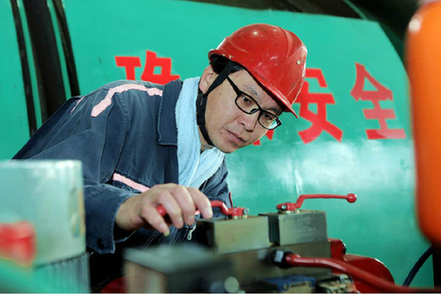1月17日,李偉在岱河礦業(yè)公司維修設(shè)備。李偉是中國眾多“煤二代”中的一員。父親曾在煤礦通風(fēng)區(qū)放炮隊(duì)工作,自己畢業(yè)后從事維修電工崗位也已經(jīng)18年。