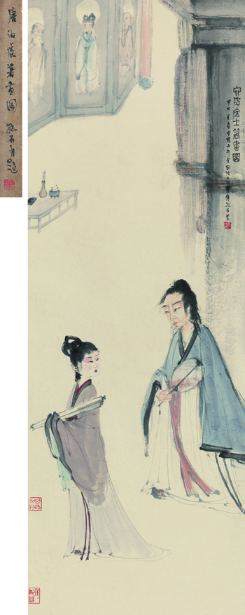 傅抱石的《六如居士著畫圖》本季以1321.6萬(wàn)港幣成交。傅抱石擅長(zhǎng)美術(shù)史論研究,熟悉文學(xué)故實(shí),習(xí)慣以歷史典故、文學(xué)名篇為題抒發(fā)情感,作品名中的“六如居士”是唐伯虎的號(hào),畫中所繪男子便為唐伯虎。
