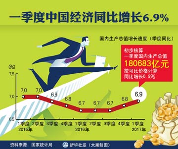 國家統(tǒng)計局17日公布了最新的國民經(jīng)濟(jì)運行數(shù)據(jù)。數(shù)據(jù)顯示,今年一季度,國內(nèi)生產(chǎn)總值(GDP)為180683億元,按可比價格計算,同比增長6.9%。從投資、工業(yè)生產(chǎn)、進(jìn)出口等多項數(shù)據(jù)來看,一季度增長超出市場預(yù)期。