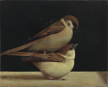 劉野有別于同輩中國藝術家,他的繪畫語言獨特而豐富,令人一眼便認出其畫作。創(chuàng)作于2011年的作品《鳥上鳥》又是其獨特作品中更讓人眼前一亮的一件,畫中描繪了兩只相互疊壓的麻雀,有宋畫意蘊,是其極為罕見的動物題材作品,層次分明、描繪細膩,呈現(xiàn)出優(yōu)秀的繪畫技巧。