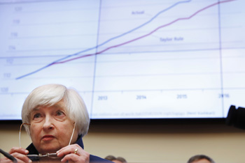 ??? 7月12日,在美國華盛頓,美國聯(lián)邦儲備委員會主席耶倫出席國會眾議院金融服務(wù)委員會的聽證會。耶倫12日表示,如果美國經(jīng)濟(jì)表現(xiàn)大體符合美聯(lián)儲預(yù)期,美聯(lián)儲可能今年開始執(zhí)行縮減資產(chǎn)負(fù)債表(“縮表”)計劃。新華社/美聯(lián) |