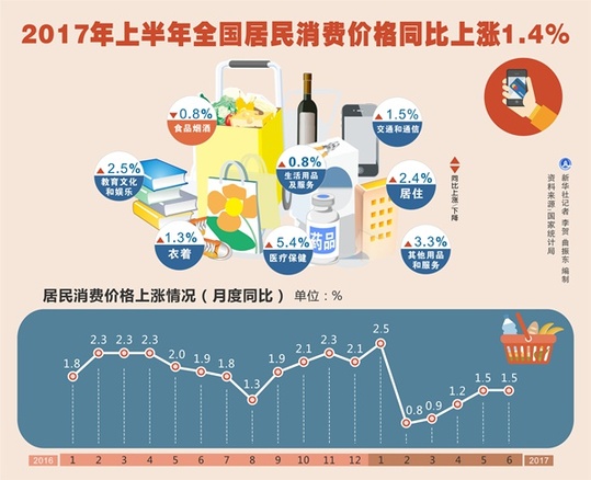 ????上半年,全國居民消費價格總水平比去年同期上漲1.4%,物價漲勢仍然溫和,通脹壓力不大。