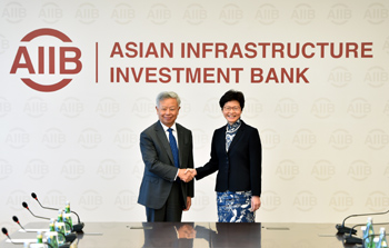 ??? 8月7日,香港特別行政區(qū)行政長官林鄭月娥(右)到訪亞洲基礎(chǔ)設(shè)施投資銀行(亞投行)總部,并與亞投行行長金立群會面。林鄭月娥表示,作為國際金融中心,香港期待更加積極地參與亞投行事務(wù)。記者 李鑫 攝 |