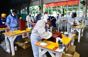 ??? 8月6日,技術(shù)工人在涂裝競技項目上比拼技能。當(dāng)日,安徽合肥經(jīng)開區(qū)第二屆勞動和技能競賽開賽,來自轄區(qū)38家企業(yè)的86名技術(shù)工人在涂裝、釬焊、叉車項目上進行競技。記者 劉軍喜 攝 |