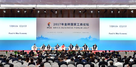 ?9月4日,2017年金磚國(guó)家工商論壇在廈門舉行“藍(lán)色經(jīng)濟(jì)”專題研討。新華社記者 李鑫/攝 |