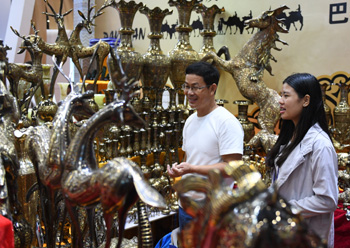 ??? 9月13日,在第14屆中國(guó)—東盟博覽會(huì)“一帶一路”專題展區(qū),參觀者在選購(gòu)來(lái)自巴基斯坦的產(chǎn)品。第14屆中國(guó)—東盟博覽會(huì)于12日至15日在廣西南寧舉辦,本屆博覽會(huì)首次設(shè)立“一帶一路”專題展區(qū),邀請(qǐng)沿線國(guó)家企業(yè)參展。記者 陸波岸 攝 |