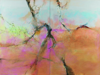 《24.12.2002-雙聯(lián)作》一股柔和而具有律動的能量充盈于此巨幅雙聯(lián)畫作,微妙的色彩層次的視覺感非常豐富:上方一抹湖藍(lán)色與下方的梅紅色以及大面積的暖褐色融合為背景色。這與趙無極早期作品著重用筆的力度及油彩的厚重方式不同,此作品不但探索了色彩,光線及用色的巧妙運(yùn)用,更是散發(fā)出輕盈的氣息以及由畫布自內(nèi)向外散發(fā)的柔和光芒。這種對于輕盈、抽象的空間的追尋,契合大膽的色彩運(yùn)用正是趙無極在晚期創(chuàng)作所追尋的和諧點(diǎn)。趙無極的藝術(shù)成就不僅在于他在西方抽象藝術(shù)發(fā)展中開創(chuàng)了其獨(dú)特具有東方美學(xué)的藝術(shù)風(fēng)格,更是他將中國哲學(xué)的深刻洞見與創(chuàng)造性詮釋于藝術(shù)創(chuàng)作之中,這條東西美學(xué)融合的艱難探索之路,不但在世界藝術(shù)史發(fā)展中留下精彩的篇章,亦是藝術(shù)家回歸內(nèi)在本源。佳士得亞洲二十世紀(jì)及當(dāng)代藝術(shù)資深專家莊俊表示:“作為世界藝術(shù)舞臺上最耀眼的華人藝術(shù)大師之一,趙無極豐富的繪畫語言與筆觸不斷帶給我們驚喜與感動。此件由歐洲征集的藝術(shù)家晚期代表作品更為本季秋拍增添更多色彩和分量。與此同時(shí),本專題將呈現(xiàn)數(shù)件趙無極不同時(shí)期油畫和紙上等精甄之作?!?/p>