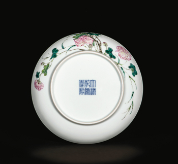 清乾隆 粉彩過(guò)枝秋水芙蓉蜻蜓圖盤 背面 |