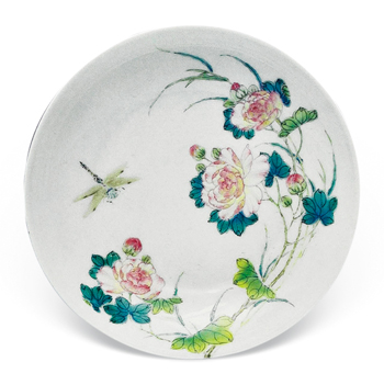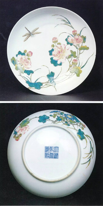 清乾隆 粉彩過(guò)枝秋水芙蓉蜻蜓圖盤 |