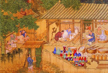清宮內(nèi)務(wù)府造辦處瓷器活計(jì)檔和陳設(shè)檔中,未見粉彩之名,但有所謂“洋彩”,當(dāng)時(shí)督窯官唐英所撰各類文獻(xiàn)也不見粉彩,《陶成紀(jì)事碑記》提到:“洋彩器皿,新仿西洋琺瑯畫法,人物、山水、花卉、翎毛,無(wú)不精細(xì)入神?!庇袑W(xué)者認(rèn)為此“洋彩”即后世所說(shuō)的粉彩。唐英所作御窯廠《則例章程》的顏料一節(jié)中,曾提到 “如成窯五彩一種,止須繪畫一手成器,若洋彩器皿,系頂細(xì)工作,照樣繪畫之后,另需畫填匠手著色加染。故分別畫彩、 畫填二項(xiàng),則為條目核算尺寸制價(jià)?!敝劣诖瞪?、錐錦地等涉及粉彩的工藝,因工序復(fù)雜,制作難度大,工價(jià)也都要另外計(jì)算。乾隆八年(1743年)唐英奉命編撰《陶冶圖冊(cè)》,稱洋彩瓷器“須素習(xí)繪事高手,將各種顏料研細(xì)調(diào)和,以白瓷片畫染燒試,必熟諳顏料火候之性,始可由粗及細(xì),熟中生巧,總以眼明心細(xì),手準(zhǔn)為性?!?/p>