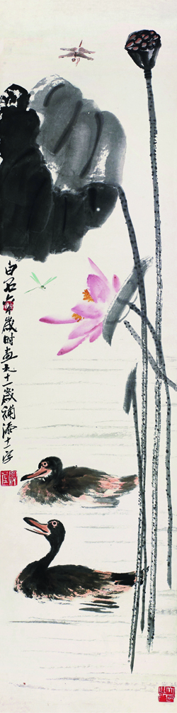 1917年仲夏,正逢護法運動興起,湘南兵荒馬亂,齊白石只身赴京以避匪患。初到北京,幾經(jīng)輾轉(zhuǎn),齊白石寓居法源寺,以賣畫治印為生。此時的齊白石醉心于八大山人,冷逸有余,富貴不足,因此作品少人問津。不久后,當(dāng)時已屬京華畫壇領(lǐng)袖的陳師曾走訪法源寺,諫言齊白石不必求俗媚世,應(yīng)沖破藩籬,自創(chuàng)風(fēng)格。年逾五旬的齊老聽取了陳師曾的勸言,開始自己的“衰年變法”。