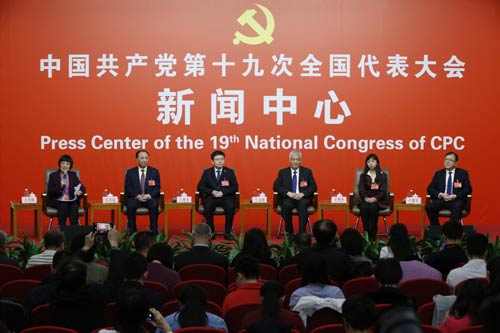 10月20日,中國共產(chǎn)黨第十九次全國代表大會新聞中心舉行主題為“實(shí)施創(chuàng)新驅(qū)動發(fā)展戰(zhàn)略”的集體采訪活動??萍疾奎h組書記、副部長王志剛,中國科學(xué)院遺傳與發(fā)育生物學(xué)研究所研究員、分子系統(tǒng)生物學(xué)研究中心主任王秀杰,浪潮集團(tuán)首席科學(xué)家、中國工程院院士王恩東,陜西省委科技工委書記、科技廳廳長盧建軍,南昌大學(xué)副校長江風(fēng)益接受采訪。新華社記者 沈伯韓 攝